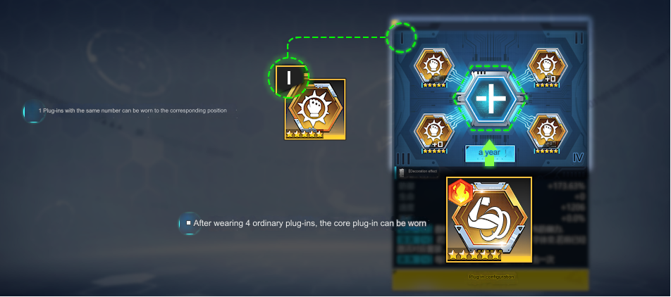 There are two types of plugins: side ones and core ones; the sides are enumerated from I to IV and can only be set in their corresponding position, and they usually improve a set stat when they come in pairs, with the exception being crafter plugins that you have to set 4 of the same to get the bonus stat or effect, and after you put the 4 sides, you can set a core plugin that has a selected effect and between one to two big stats that can be empowered if they are the same element that the Digimon you're equipping that core.